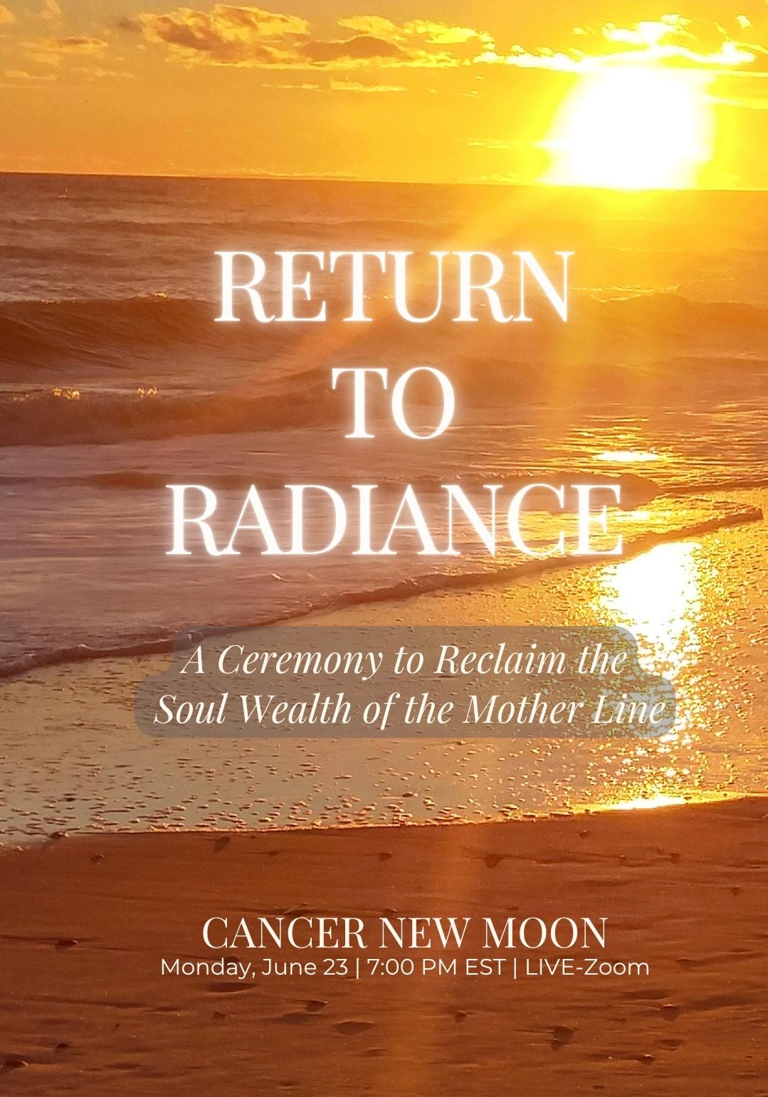 Return to Radiance opens the field of remembrance. It is the ceremonial emergence of your purified essence, the light of your soul, embodied.